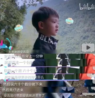 田亮看得怪心疼的,就提出背安吉一分钟,让安吉从一数到六十,就放他下来。