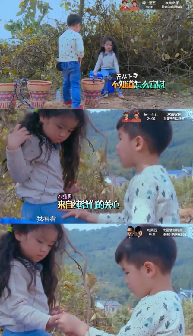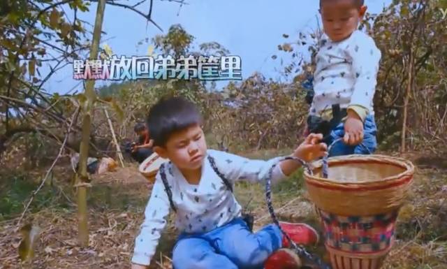 还有在摘猕猴桃的时候,小鱼儿把手伸进安吉背篓里。安吉误会了小鱼儿拿走了自己的猕猴桃,生气地把小鱼儿背篓里的猕猴桃拿出来。
