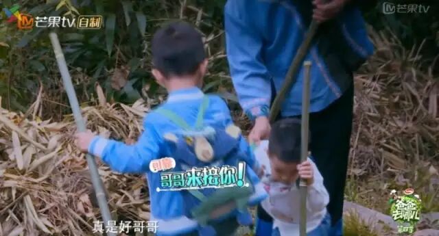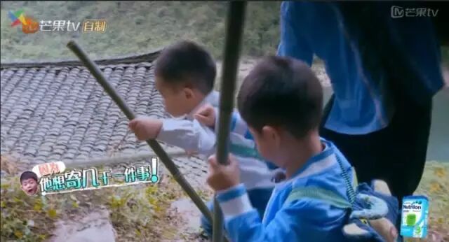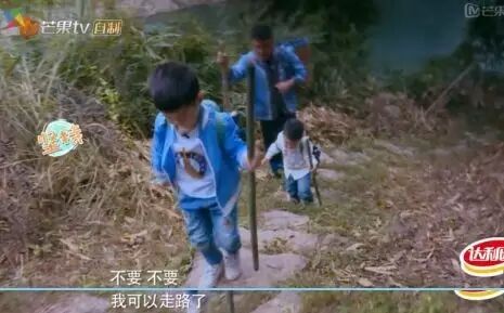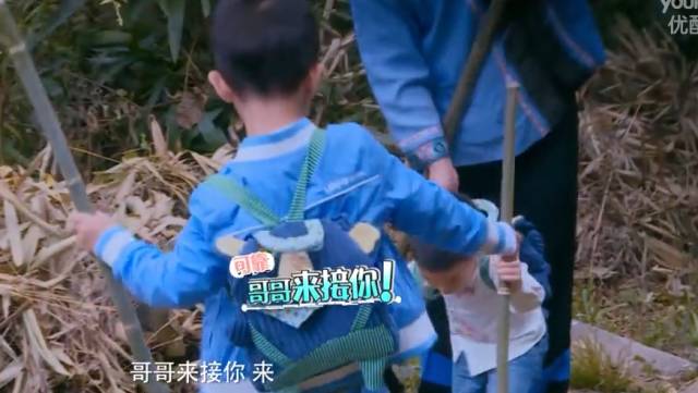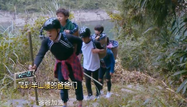 还有一次,沙溢的飞机晚点了,结果比大家迟到达目的地。别的小朋友都可以坐在小背篓里,被爸爸背上山。