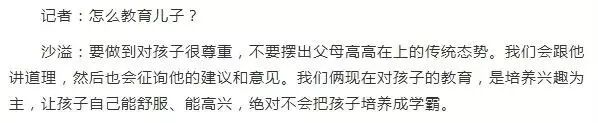 但是沙溢说,给孩子尊重才是最重要的,不能摆出父母高高在上的传统态势。