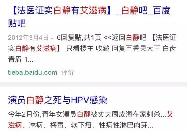 2012年白静家人授权律师发布声明,要求停止一切谣言诽谤,但声明中并未具体说明哪些是谣言诽谤。