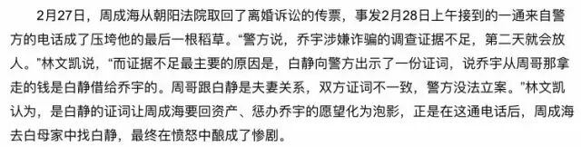 2月底周从警方处知悉白静为乔宇作证、乔宇即将释放一事。当天下午惨案发生。