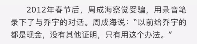 2012年春节后,周成海渐渐感到不对,便用录音笔录下了与乔宇的对话,并报了案