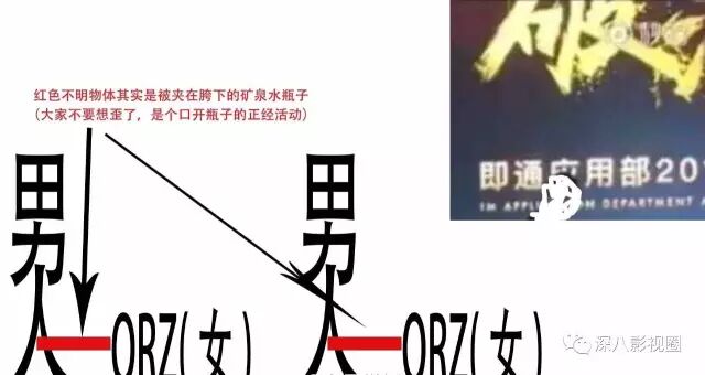 游戏的玩法,是男同事胯下夹一个矿泉水瓶,女同事要跪在地上用嘴拧开盖子。