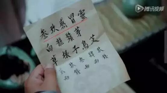 “三九”真是《青云志》的大金主,剧中的一张药方竟然隐藏着三九感冒灵五个繁体字。甚至药方最下角还有999的logo式样,再感人的剧情碰上这个植入也只能哭笑不得了吧……