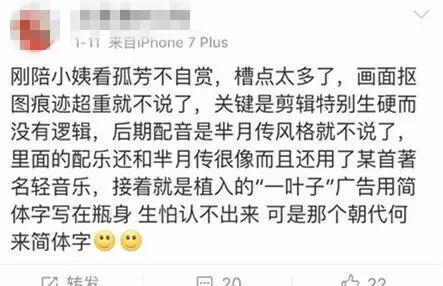 吃瓜群众们对《孤芳不自赏》里超硬的广告植入也是看法不一,有觉得很搞笑,看得高兴就好了嘛