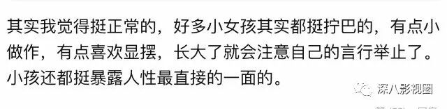 李毅吧的评论太恶心就不贴过来了,而豆瓣那时候既有八卦群众大呼受不了小女孩这样妖里妖气,也有人认为这年纪的女孩很多都有点小拧巴做作,长大后就会自然注意改正的,不值得大惊小怪。