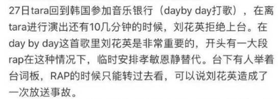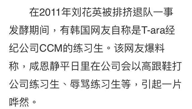 然后网友就觉得花英也太惨了吧!!又被排挤又被退团,一时间找出了大量T-ara全员排挤刘花英的证据,指责T-ara全团。