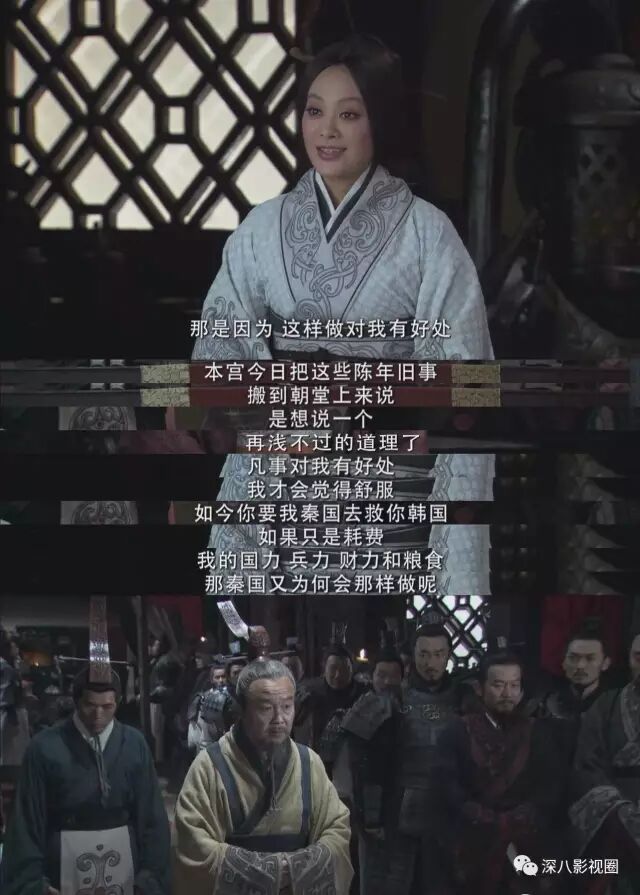 首轮明撕之后,二轮变成了不动声色的暗撕。两太后一起接受他国使臣朝贺,却收到韩国求援出兵的要求。首先发言的是嫡太后,芈八子却巧妙而迅速地将话语权转到了自己手上。