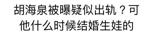 按照狗仔大圣的说辞,胡海泉这是出轨了。不过很多人的第一反应是:他啥时候结的婚??