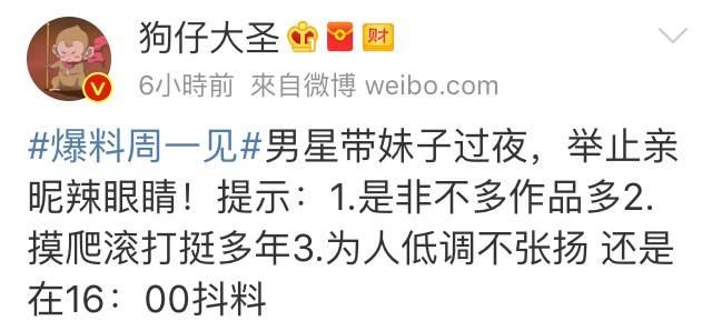 卓伟的徒弟狗仔大圣自从上次爆了张继科和袁姗姗的水料以后,也许是势必要干出一番大事,兴冲冲地跑去拍出轨,还真的给他拍到了?