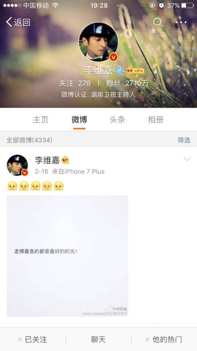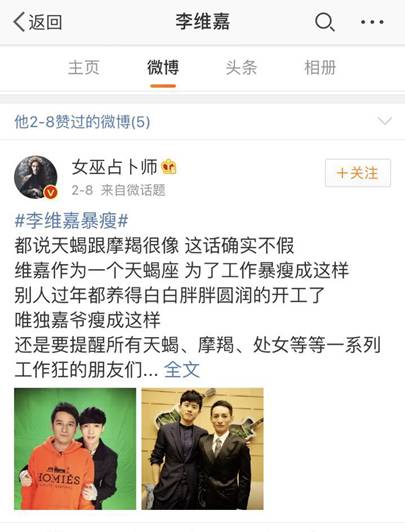 但是他前两天也点赞过心疼他工作辛苦导致暴瘦的微博哎,就这么盖章情伤也不妥吧。