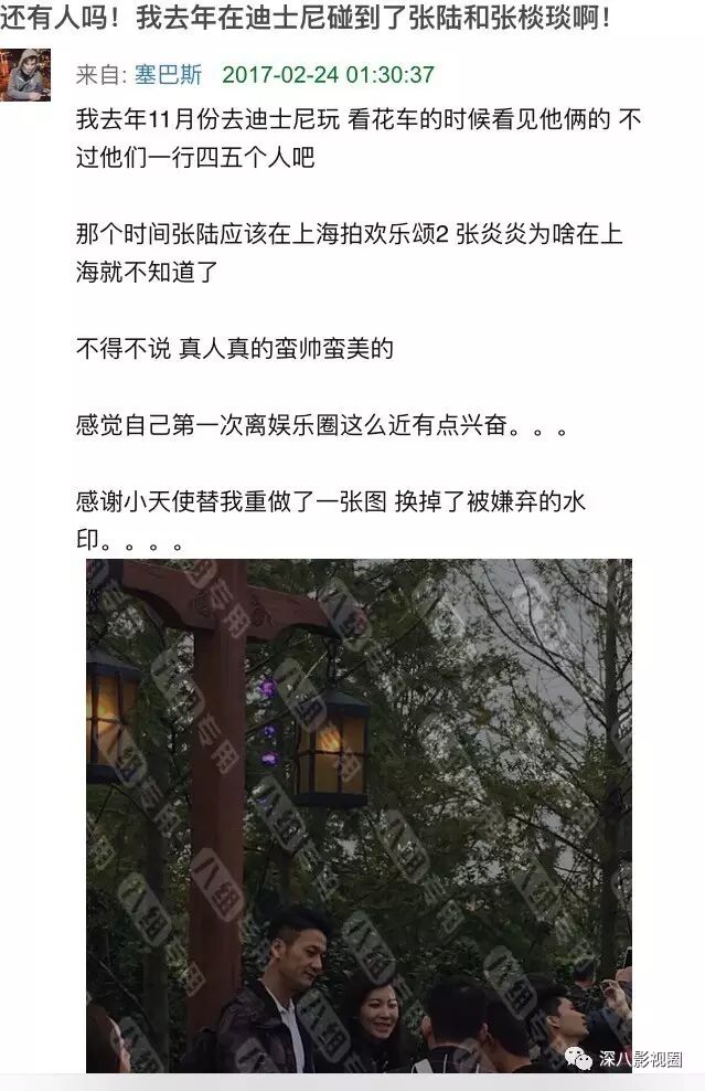 昨晚邵思涵突然发难后,民间福尔摩斯立刻展开大行动帮她找锤,但经过一天一夜,也没发现特别实的锤。昨晚先是有网友发出去年在迪士尼碰到张陆张棪棪的照片。