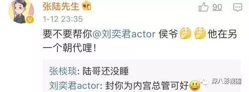 张棪棪和张陆在微博评论中互动不少,但语气都挺正常,而且十条互动里,倒有九条会拉上《琅琊榜》里扮演谢侯爷的刘奕君。