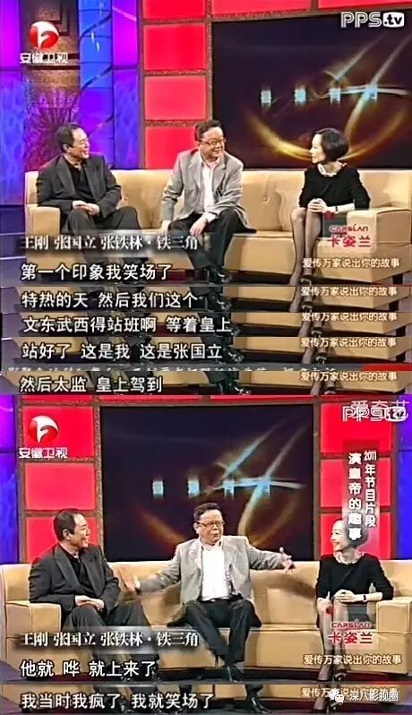 王刚对张铁林的第一印象就是演皇帝时的各种夸张动作,所以他第一次见张铁林演戏就笑场了。