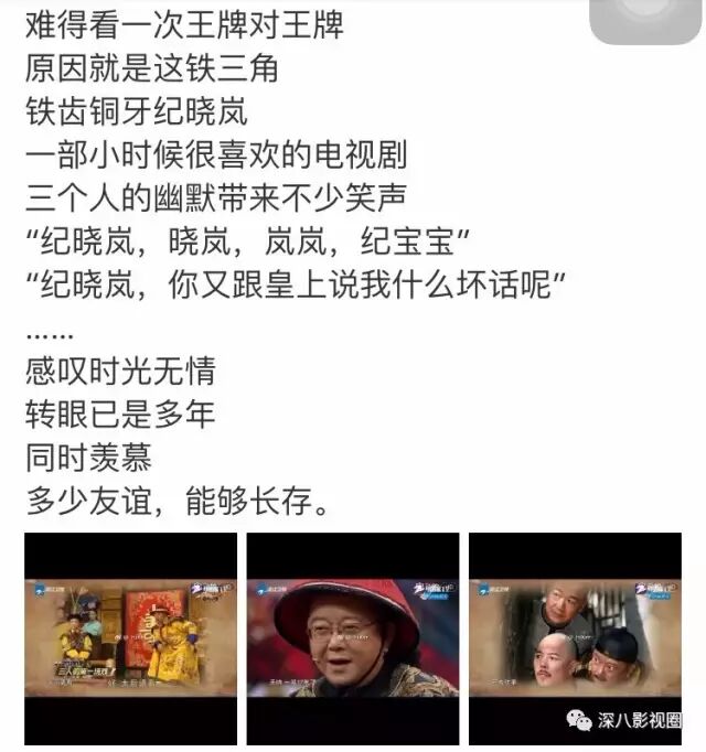 这三个已经年过半百的老戏骨,重聚带给了观众许多感动。《铁齿铜牙纪晓岚》里伴着一代人长大的“铁三角”,已经让我们爱了17年了!