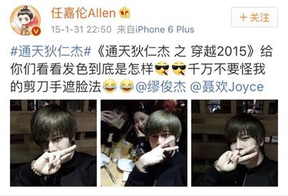 现在依然能看见当初拍摄《通天狄仁杰》时,任嘉伦的微博互动。
