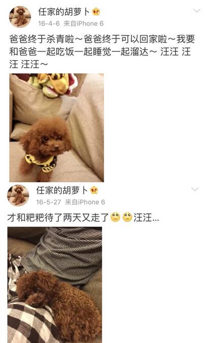 到后来,狗爸(任嘉伦)经常工作忙聚得少,舍不得粑粑的除了狗估计还有狗麻麻。