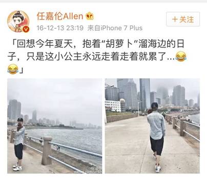 背景和任嘉伦自己微博里的一样,都是青岛海边: