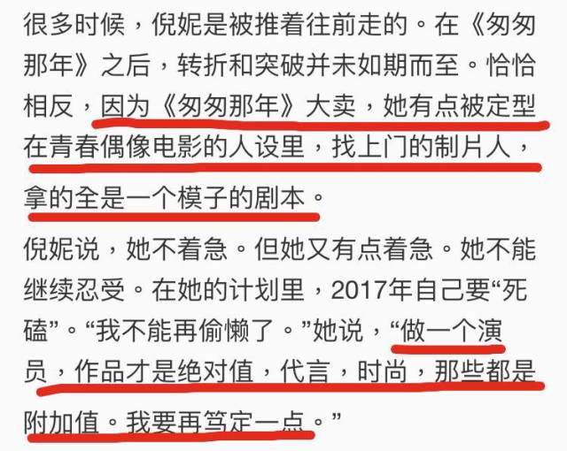 但倪妮始终没遇到她最渴望的那种片子,她自己也说演过太多爱情片,很想演关于女人的一生。