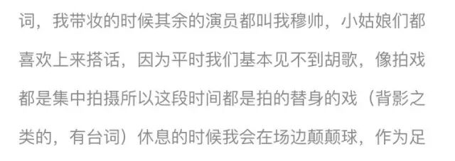 帖子中称,平时在剧组几乎见不到胡歌,进组这段时间都是集中拍替身的戏。