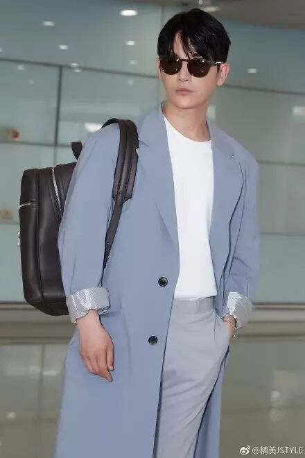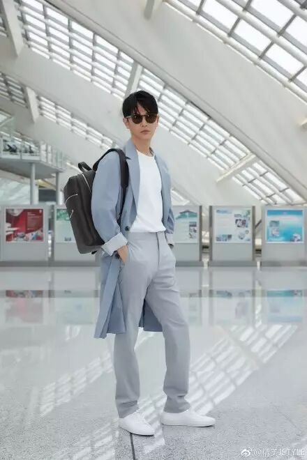 孙坚这一身蓝白灰搭配也不错,可以说是非常适合夏天了
