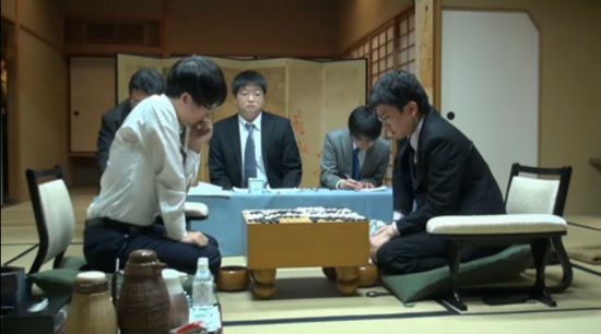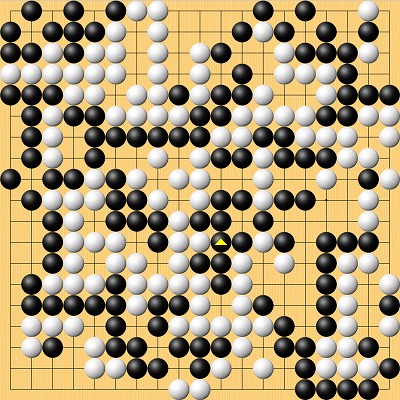 【名人戦第4局终局の场面】 黒:井山裕太名人 白:高尾坤路九段 黒中押し胜ち