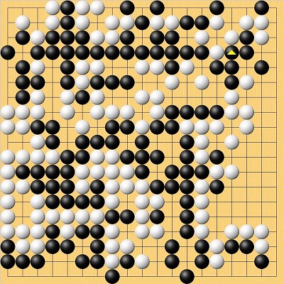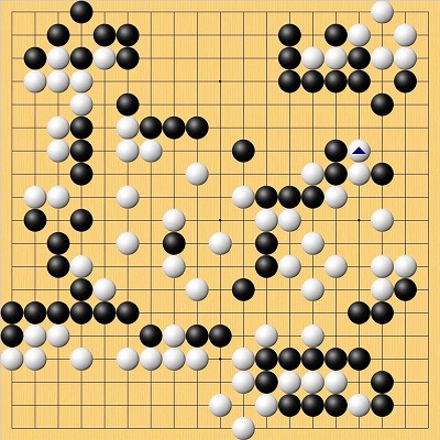 黒:井山裕太本因坊 白:羽根直树碁圣 黒番中押し胜ち