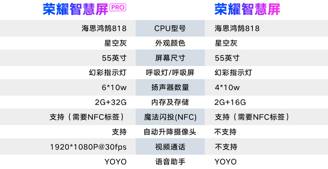 “智慧屏不是电视,而是电视的未来。”——荣耀总裁赵明用这样一句话来介绍了新品智慧屏。55寸荣耀智慧屏共分为标准版和pro版,其中55寸标准版的售价为3799元,55寸高配pro版的售价为4799元。这也是华为首次采用了华为鸿蒙OS,搭载海思鸿鹄818智慧芯片和升降式AI摄像头。