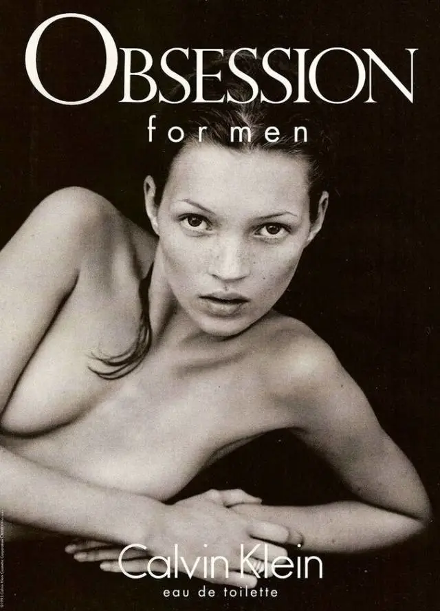 在1993年,凯特·莫斯在拍摄Calvin Klein的“痴迷”男士香水广告活动中再次卷入另一个有争议的广告中。许多人认为这支广告促进了女主人公别致的外观。