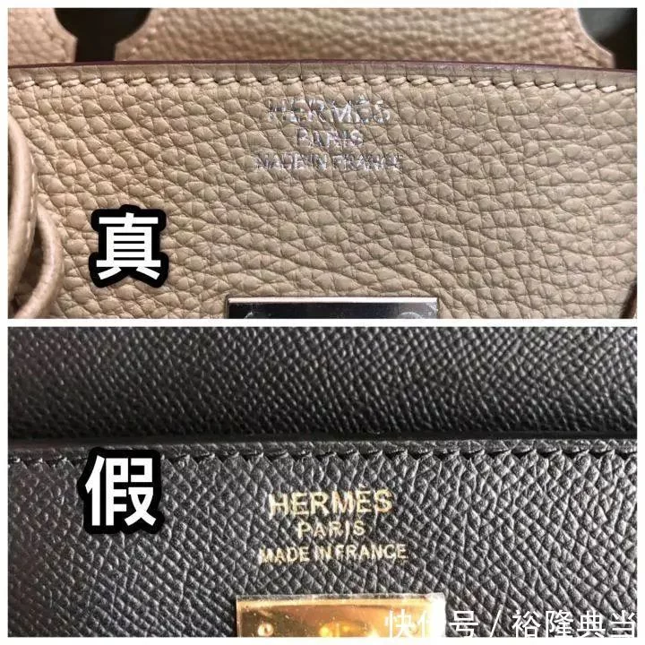 正品爱马仕的皮质LOGO标识Hermès是一个字母一个字母手工拓印的,而假货基本上都是用钢印一下压出来的,个别的虽然也是一个个字母拓印的但是边缘较浅 清晰度不够 字体也会粗很多https://p0.ssl.img.360kuai.com/t01b66dd7d71a58780e.webp