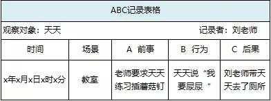 北大医疗脑健康儿童发展中心专家在这里提醒您要注意,A和C分别指目标行为B之前和之后发生了什么,这里要求时间临界点非常接近,有时甚至是几秒之前或之后的事情。