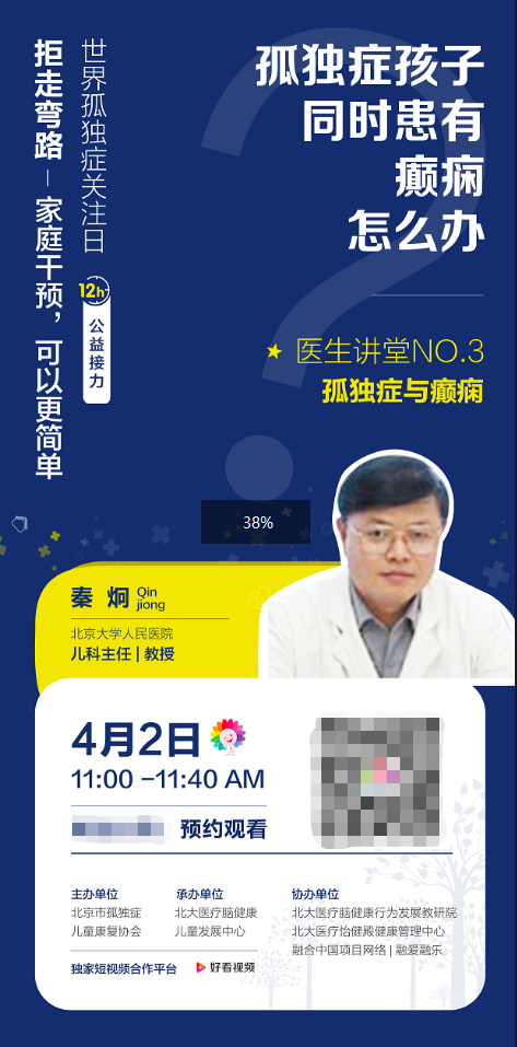 秉着“让孤独症孩子的家长们少走弯路”的初心,2020年4月2日,第十三个世界孤独症关注日,由北京市孤独症康复协会主办,北大医疗脑健康儿童发展中心负责承办,北大医疗脑健康行为发展教研院、北大医疗怡健殿健康管理中心和融合中国项目网络协办的《医生讲堂》栏目将推出“拒走弯路——家庭干预,可以更简单”12小时公益接力活动。