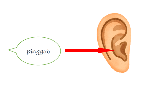 当我们作为说话者想向对方传递苹果这个语言符号时,我们脑海中首先会浮现一个苹果。