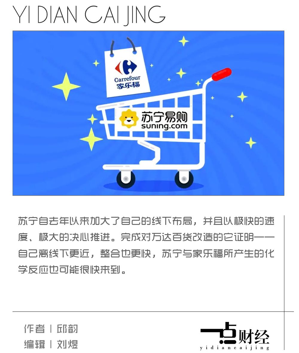 苏宁自去年以来加大了自己的线下布局,并且以极快的速度、极大的决心推进。完成对万达百货改造的它证明——自己离线下更近,整合也更快,苏宁+家乐福所产生的化学反应也可能很快来到。