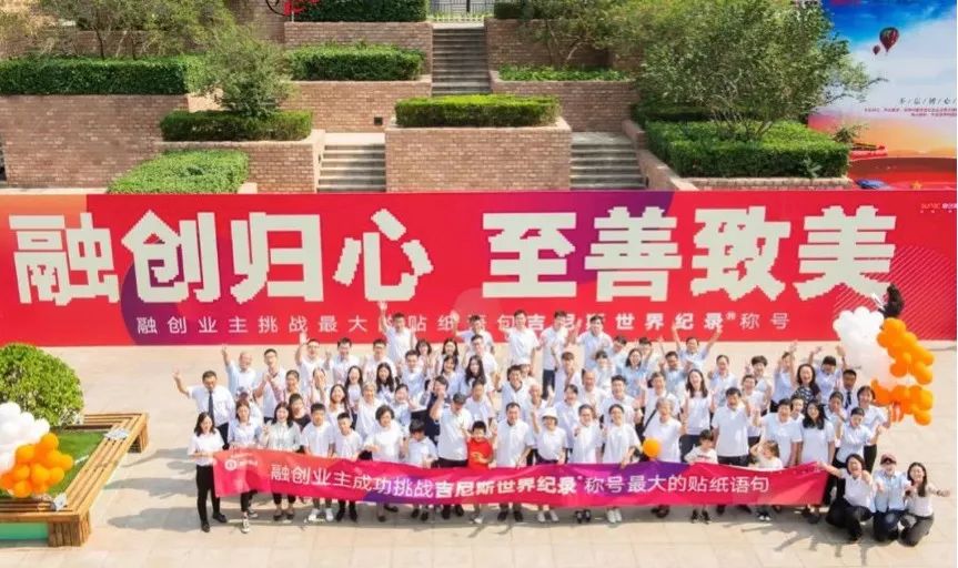 156名融创家人,历时3个多小时,共同打破吉尼斯世界纪录称号“最大的贴纸语句”,并以三倍于原纪录的贴纸数量,成功获得吉尼斯世界纪录官方认证!