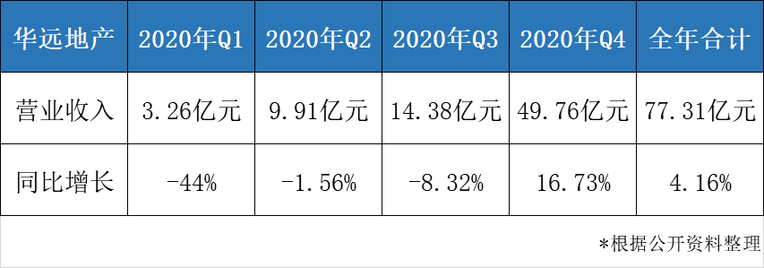 上市公司营收、利润方面,华远地产2020年营业收入达77.31亿元,同比增长4.16%;归属上市公司股东的净利润则较2019年下降45.32%,仅为4.14亿元。有两方面因素能够解释华远地产营收增长而净利下降的状态。