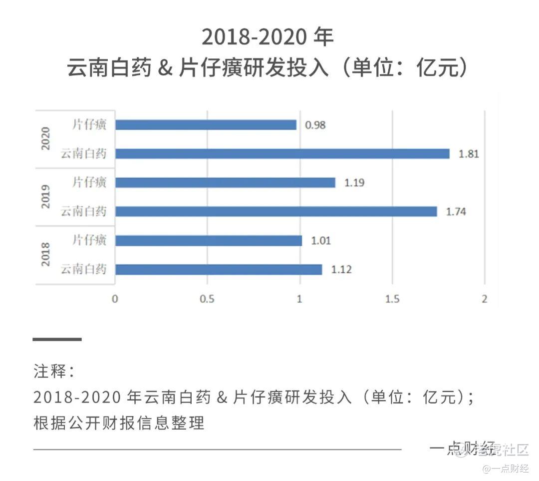 不过几年过去了,畅想的一切还是没有发生。2018-2020年间,云南白药的研发费用占当期营业收入仅为0.41%、0.59%和0.55%。太多的钱花去打广告,让中药龙头变得不伦不类。最终在2020年8月市值被片仔癀超越,竟然如此合情合理。