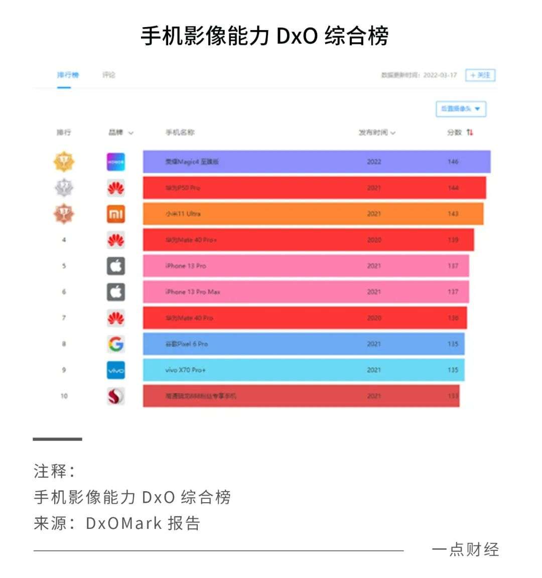 经过数代产品更迭,荣耀成为在影像实力上对垒苹果首屈一指的中国厂商,在手机影像卡位战新一轮竞赛中已取得领先优势。