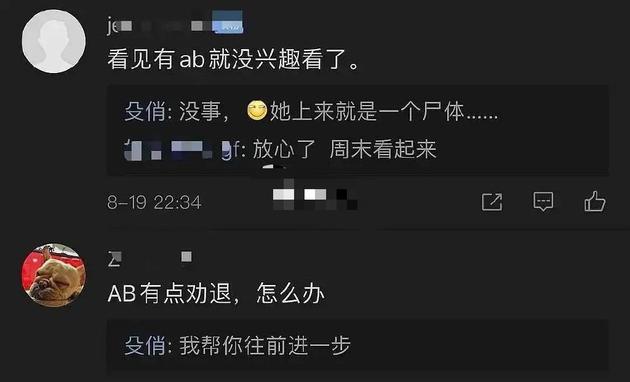 有一条吐槽,最为打眼——有网民放上一张截图,图中有网友表示“看见anglebaby就没兴趣看了”,而与该剧编剧殳俏同名的网友回复:“没事,她上来就是一具尸体。。。。。。”所以,这算“官方吐槽”?