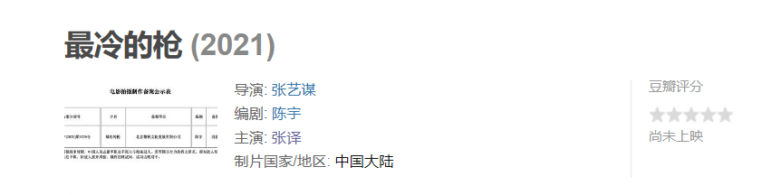 在张艺谋备受期待的抗美援朝新片《最冷的枪》的豆瓣条目中,主演一栏,已经赫然写上了张译的名字。