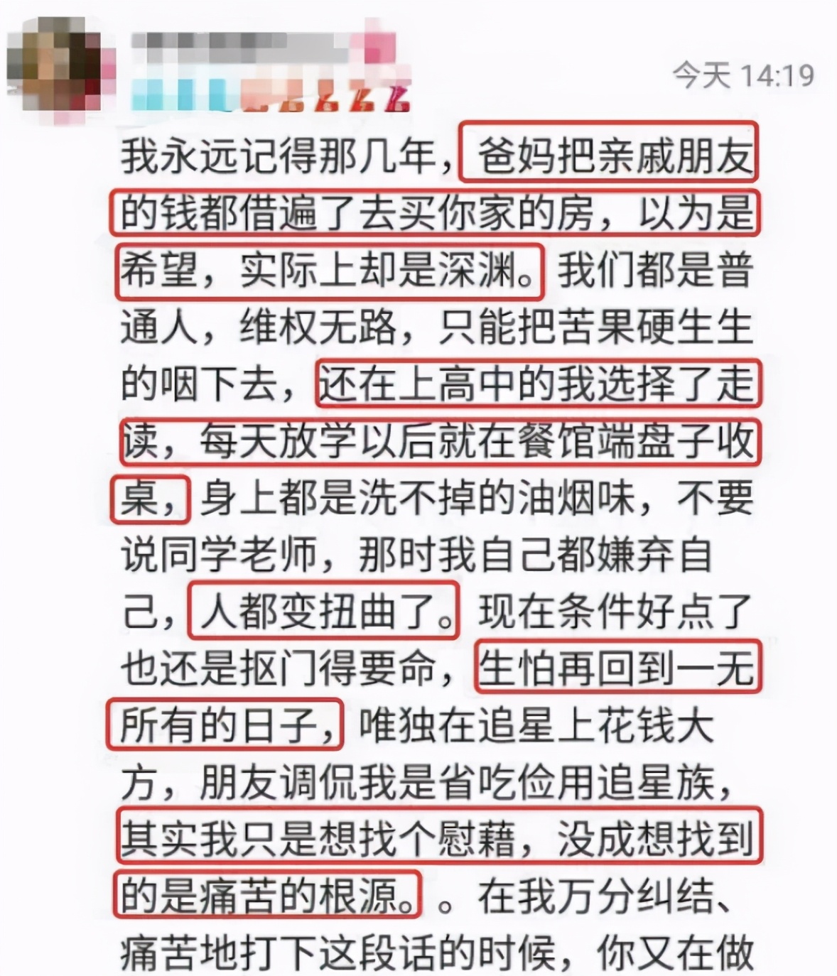 粉丝说当初为了买周震南家的房子,管周边的亲戚朋友借了钱,本以为能美滋滋喜提爱豆同款房,结果不得不打工还钱。