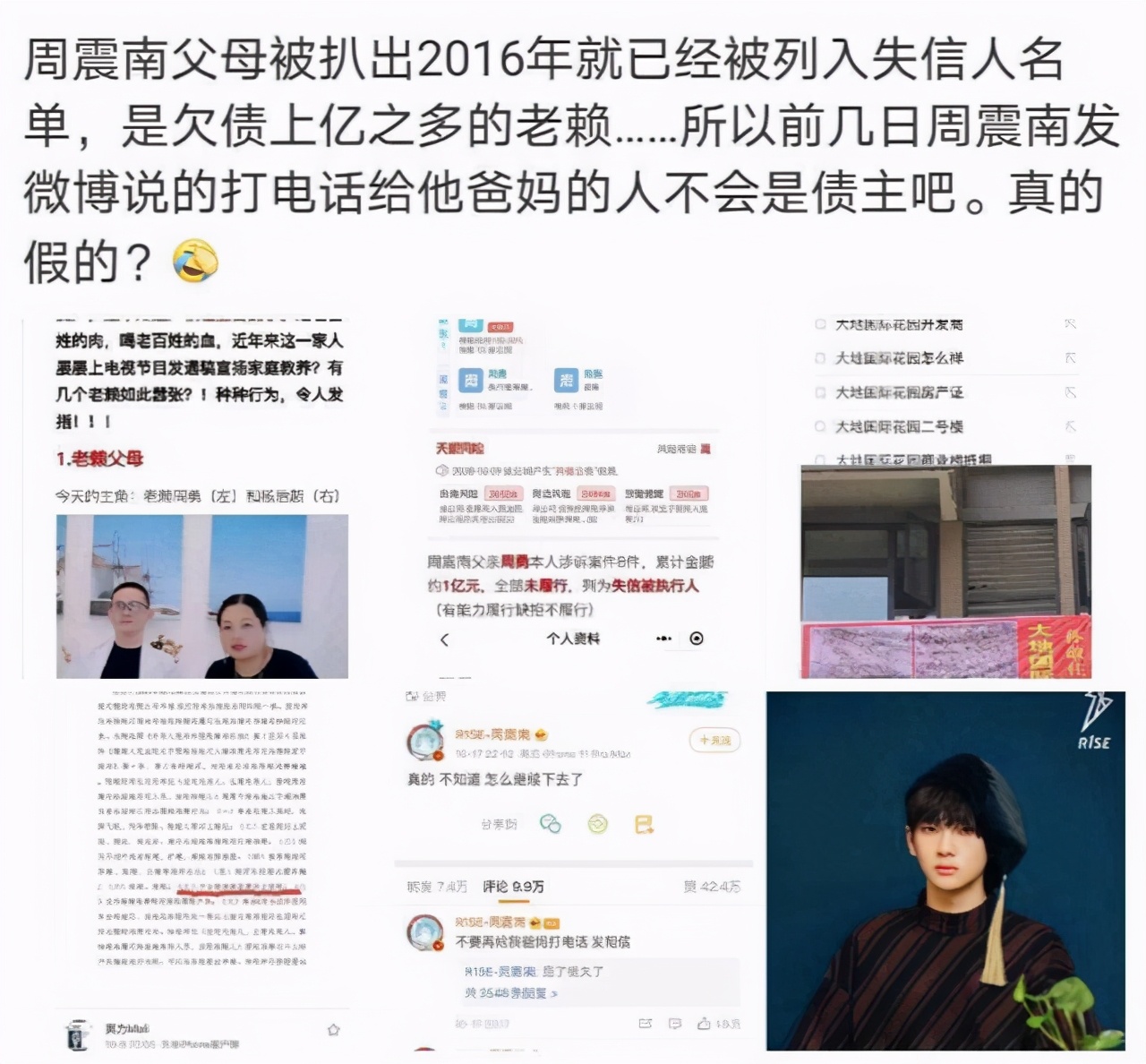 起因是25日有网友爆料称,周震南父母是多年欠债不还的“老赖”。