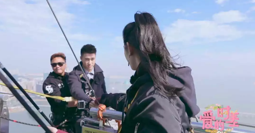 接下来节目就成了何猷君追求奚梦瑶的大型浪漫现场,奚梦瑶在《我们来了》里恐高,说过谁为她蹦极她就嫁谁,何猷君就在恋爱节目里当着她面蹦极。