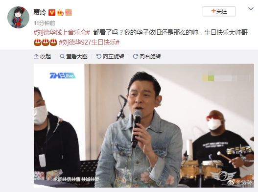 9月27日是刘德华59岁的生日,天王开线上生日会,电影综艺忙到团团转的迷妹贾玲不忘晚间发文为男神庆生,“刘德华线上音乐会都看了吗?我的华子依旧还是那么的帅,生日快乐大帅哥”,还晒出了一张刘德华线上音乐会的截图。