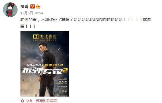 当年刘德华接受冰桶挑战。贾玲激动转发,转发语——“圈我圈我”。沈凌给她评论,“圈住你然后一个过肩摔。”