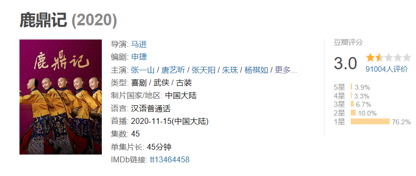 当观众越来越想直奔高潮。电视剧遭遇游戏、短视频等的分流,做话题剧、极端化当然成为这个时代的潮流。比如口碑扑街的《鹿鼎记》,播出期间网播量持续创新高。