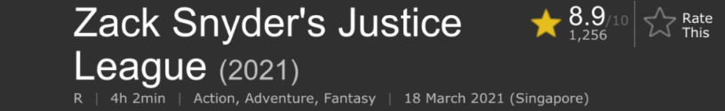 而扎导版《正义联盟》IMDb目前均分高达8.9!MetaCritic用户均分已经从8.8升至9.0!