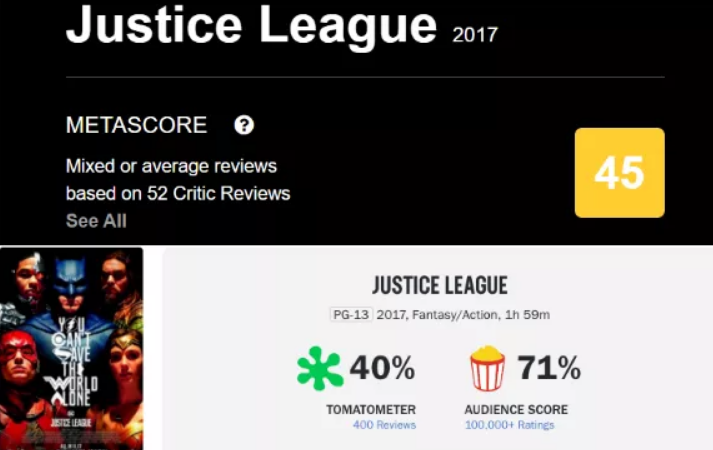 院线版《正义联盟》IMDb6.3,METASCORE 45分,烂番茄新鲜度40%……