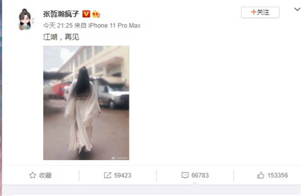 至于未来武侠的命运会如何?正如张哲瀚在微博PO照告别剧中角色「周子舒」说的那句:「江湖,再见」。